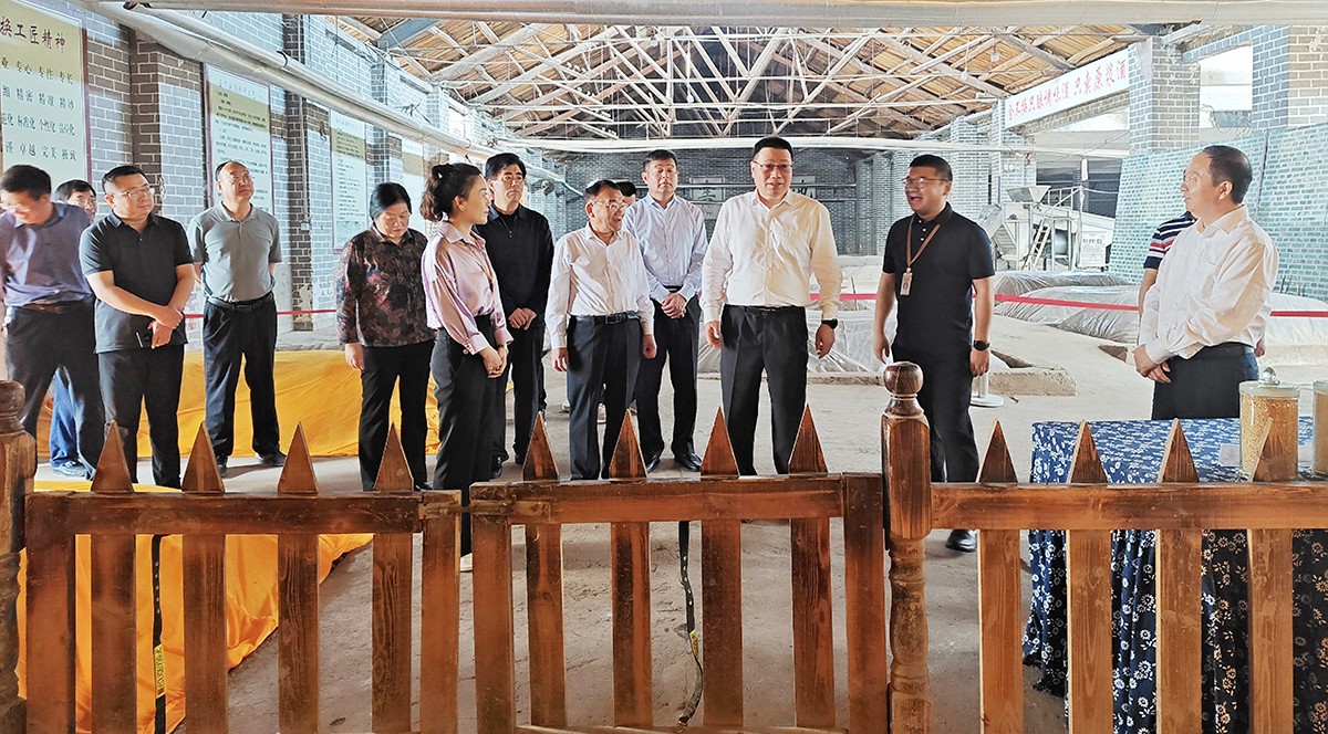 湯涌主席一行查看了金不換文化展示區(qū)、藏酒區(qū)、銷售展廳、明清窖池群和亳酒城市會客廳。金不換白酒集團(tuán)黨委書記、總裁支濤介紹了近階段企業(yè)生產(chǎn)、經(jīng)營情況和未來發(fā)展規(guī)劃。